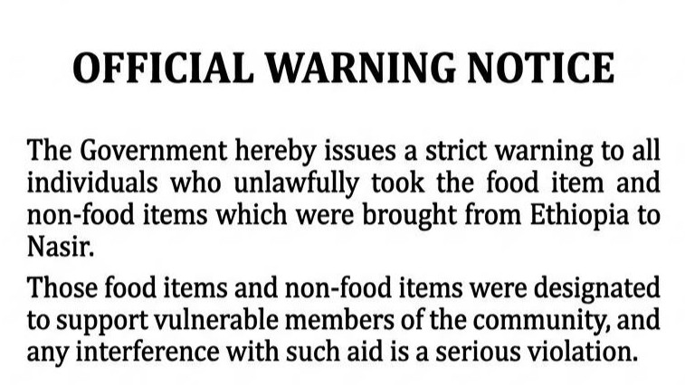 Upper Nile Government Gives Aid Looters 24 Hours to Return Items, Warns of Strict Legal Action