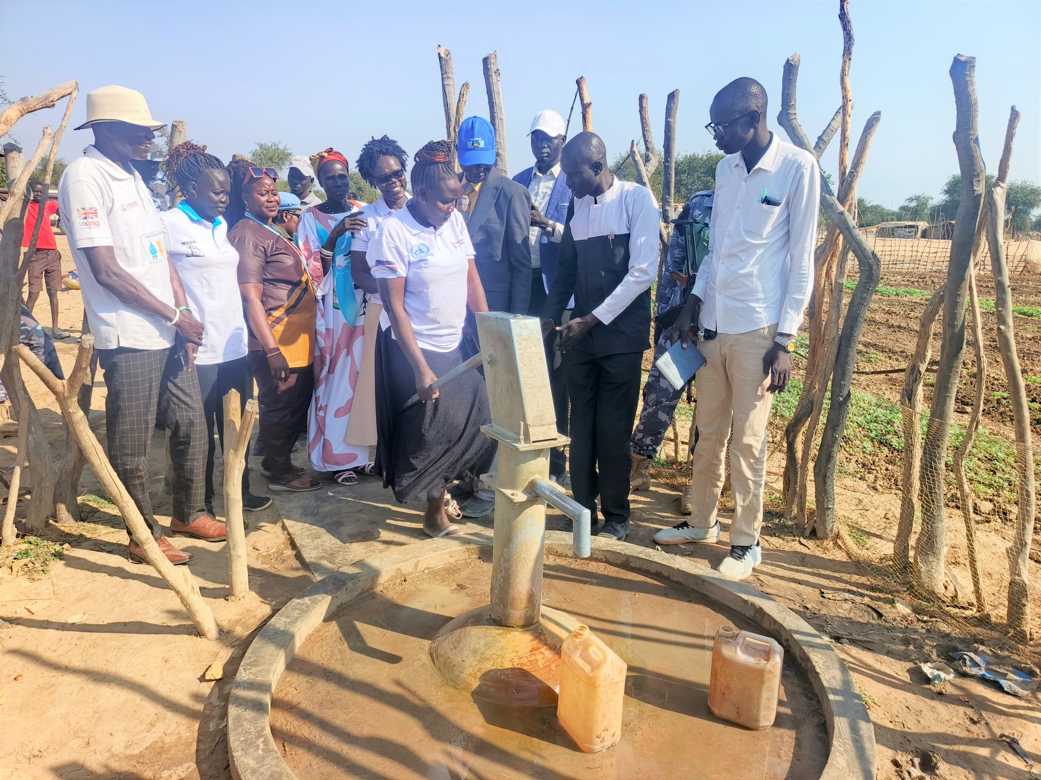The UN Mission has drilled boreholes to improve access to clean water at the Twic displacement camp, equipped with user-friendly hand pumps to provide safe drinking water to over 24,500 people in the camp, as well as to the host communities in the Aweng and Wunrok areas.