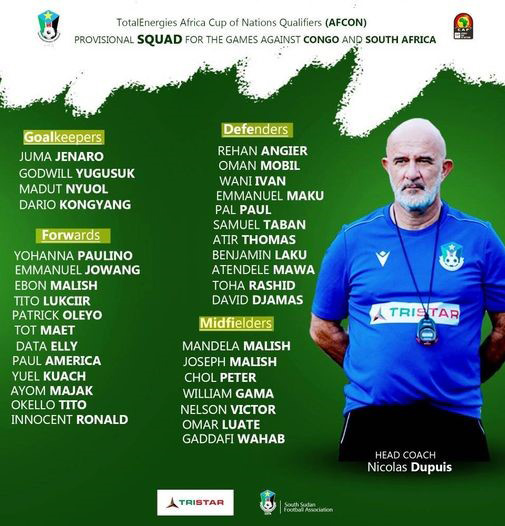 French coach Nicolas Dupuis, head of the South Sudan national team, has selected 34 players in preparation for the upcoming matches against Congo-Brazzaville and South Africa. These encounters are scheduled for the fifth and sixth rounds of qualifiers for the African Cup of Nations (AFCON) Morocco 2025.