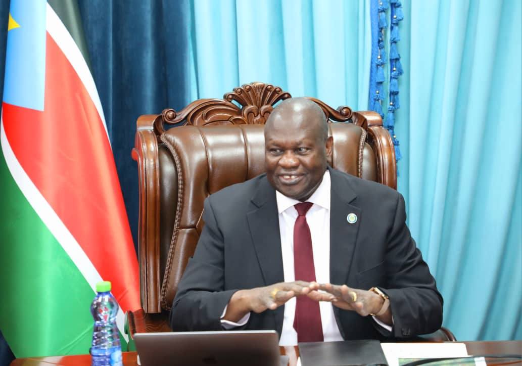 The First Vice President of the Republic of South Sudan and Chairman of the National Water Committee, Dr. Riek Machar Teny, held an important meeting with the Minister of Water Resources and Irrigation, Dr. Val Mai Deng, and representatives from key development partner organizations, including the International Organization for Migration (IOM) and the World Food Programme (WFP).