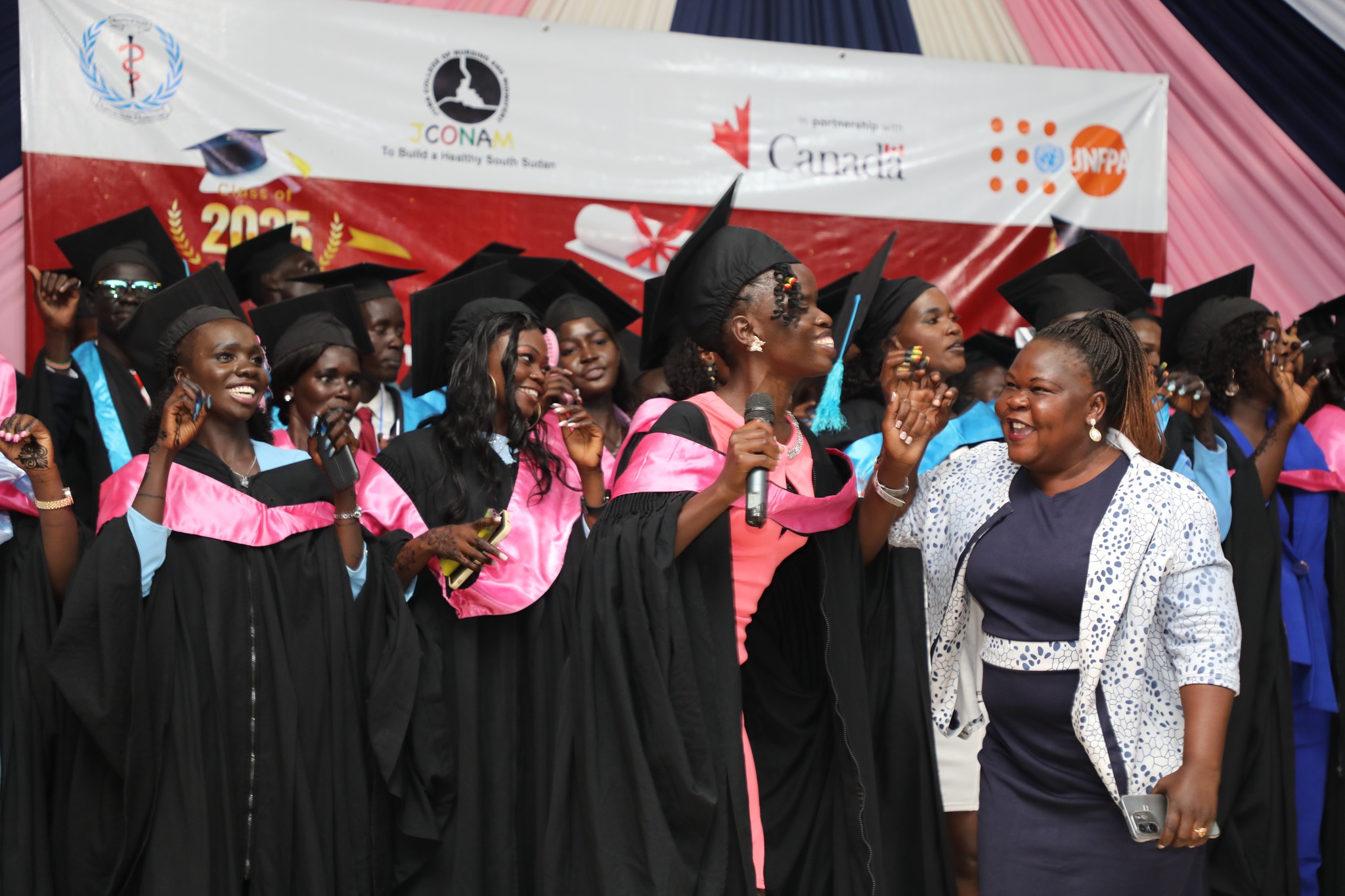 JCONAM College celebrated the graduation of 44 nurses and 39 midwives from South Sudan at the Nyakuron Cultural Center. Suzanne Mandong, the representative of the United Nations Population Fund (UNFPA) in South Sudan, stated that investing in human resources in the health sector is an investment in the future of the country because every midwife represents the health of women, families, and communities in the region, which is exactly what South Sudan needs.