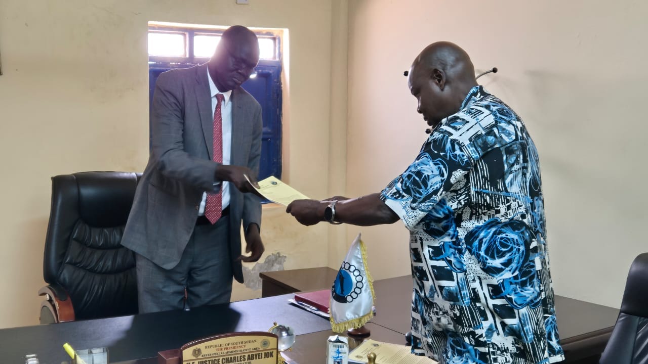 The newly appointed Head of the Abyei Administrative Area, Malona Charles Jok Abyei, officially assumed his duties at his office in the General Secretariat of the Government of the Administrative Area.