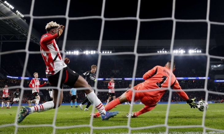 A penalty was awarded against Arsenal three minutes before halftime when Thomas Partey extended his arm around PSV captain Luuk de Jong’s neck. Lang converted the spot-kick, giving PSV their only goal of the match.