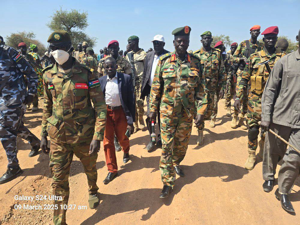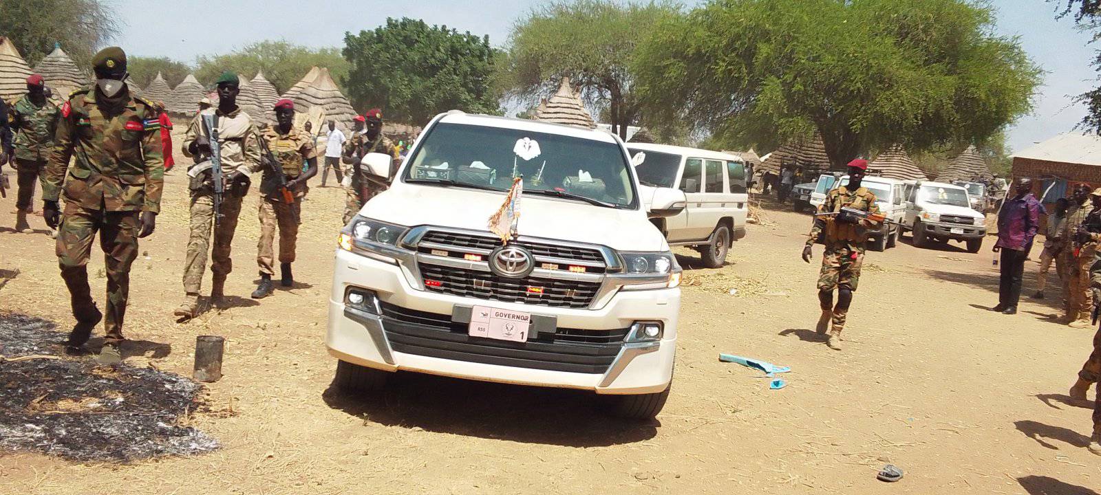Governor of Warrap State, General Magok Magok Deng, along with his accompanying delegation, arrived at Awul Fayam in Northern Tonj County to hold a meeting on security and peace with the local community.