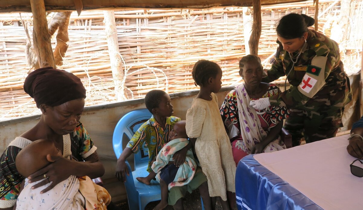 Nearly 400 internally displaced persons at the Naivasha camp in Wau, Western Bahr el Ghazal, received medical care, including free check-ups and necessary medications, from Bangladeshi peacekeepers serving with the United Nations Mission in South Sudan (UNMISS).