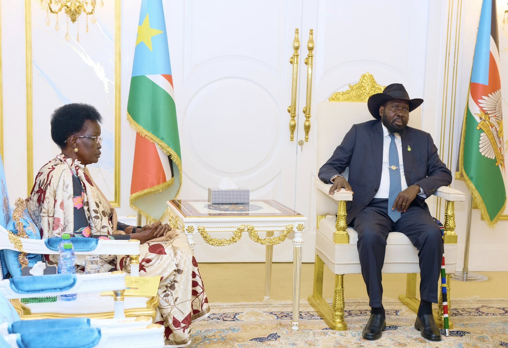 His Excellency President Salva Kiir Mayardit held an important meeting on Monday with Vice President for Gender and Youth Cluster, Mrs. Rebecca Nyandeng De Mabior, at the Presidential Palace in the capital, Juba. The discussions focused on the latest political, social, and economic developments in the country.