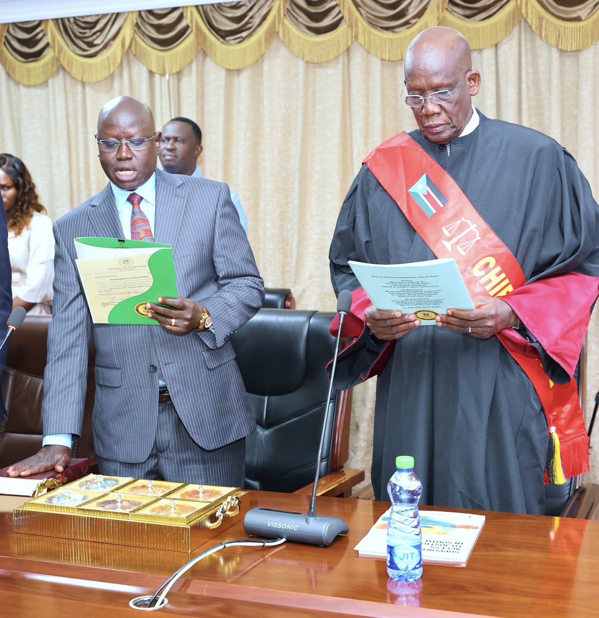 In a new step to enhance peace and stability in Warrap State, Ambassador Bol Wek Agoth was officially sworn in this morning before President Salva Kiir Mayardit to assume his duties as the new governor of the state.