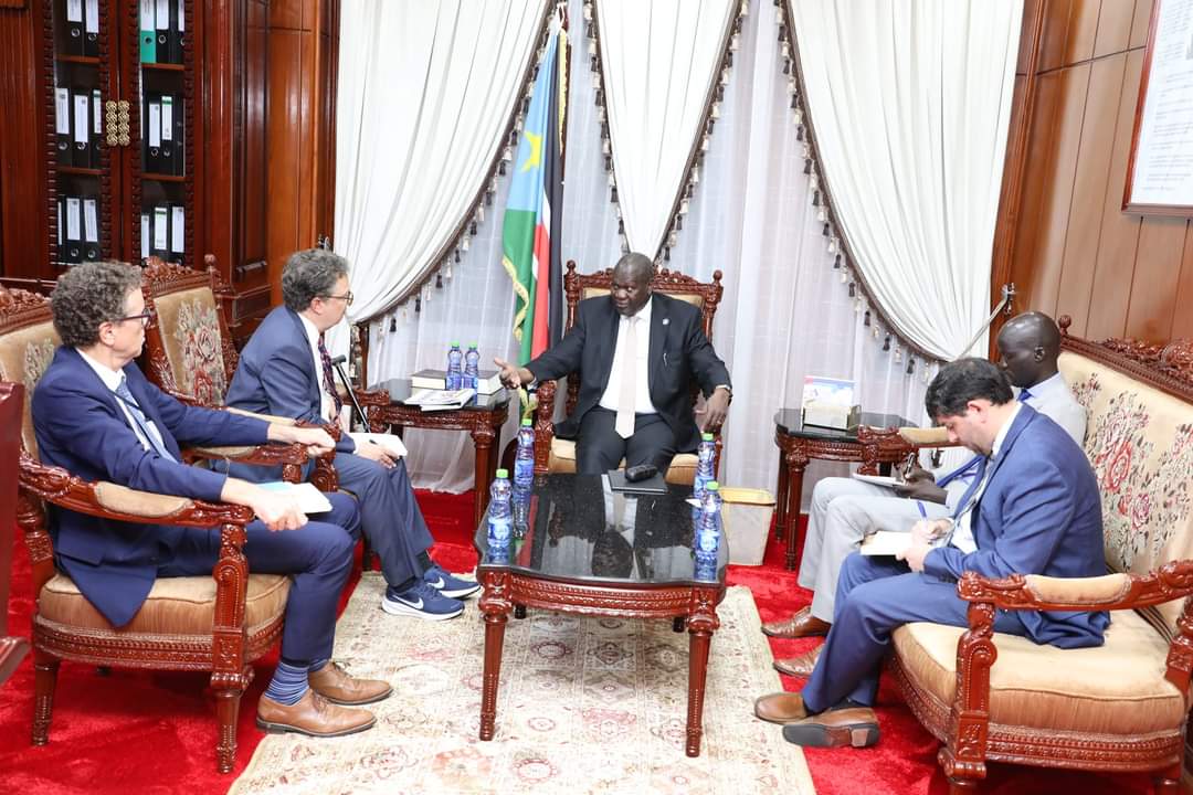 The First Vice President, Dr. Riek Machar Teny, held a meeting in his office with the U.S. Ambassador to South Sudan, Michael J. Adler.The two sides primarily discussed issues related to the 2018 Revitalised Peace Agreement.