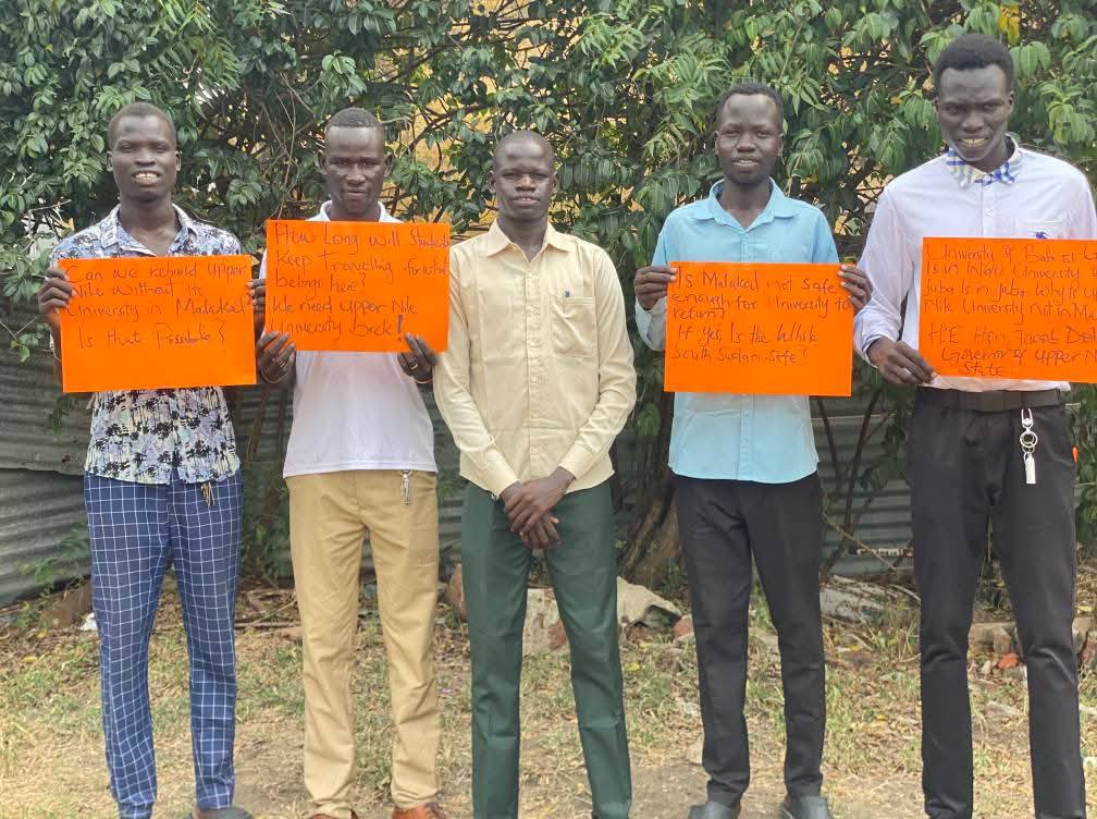 The demonstrators urged Upper Nile State Governor Jacob Dollar, who was recently appointed, to take immediate action to restore the university to its original location, stressing that the university’s presence in Malakal is vital for reconstruction, development, and building a better future for the youth of the state.