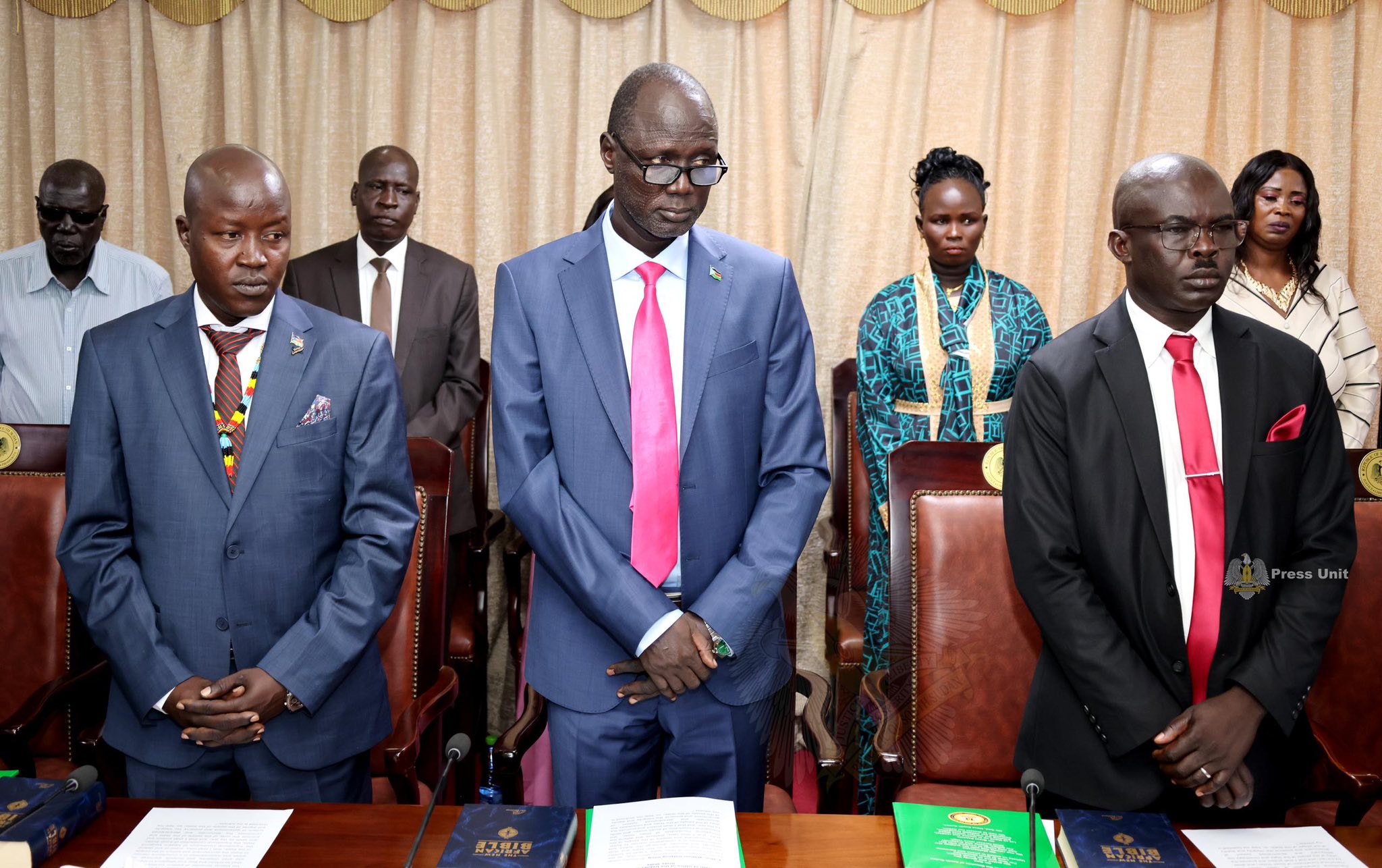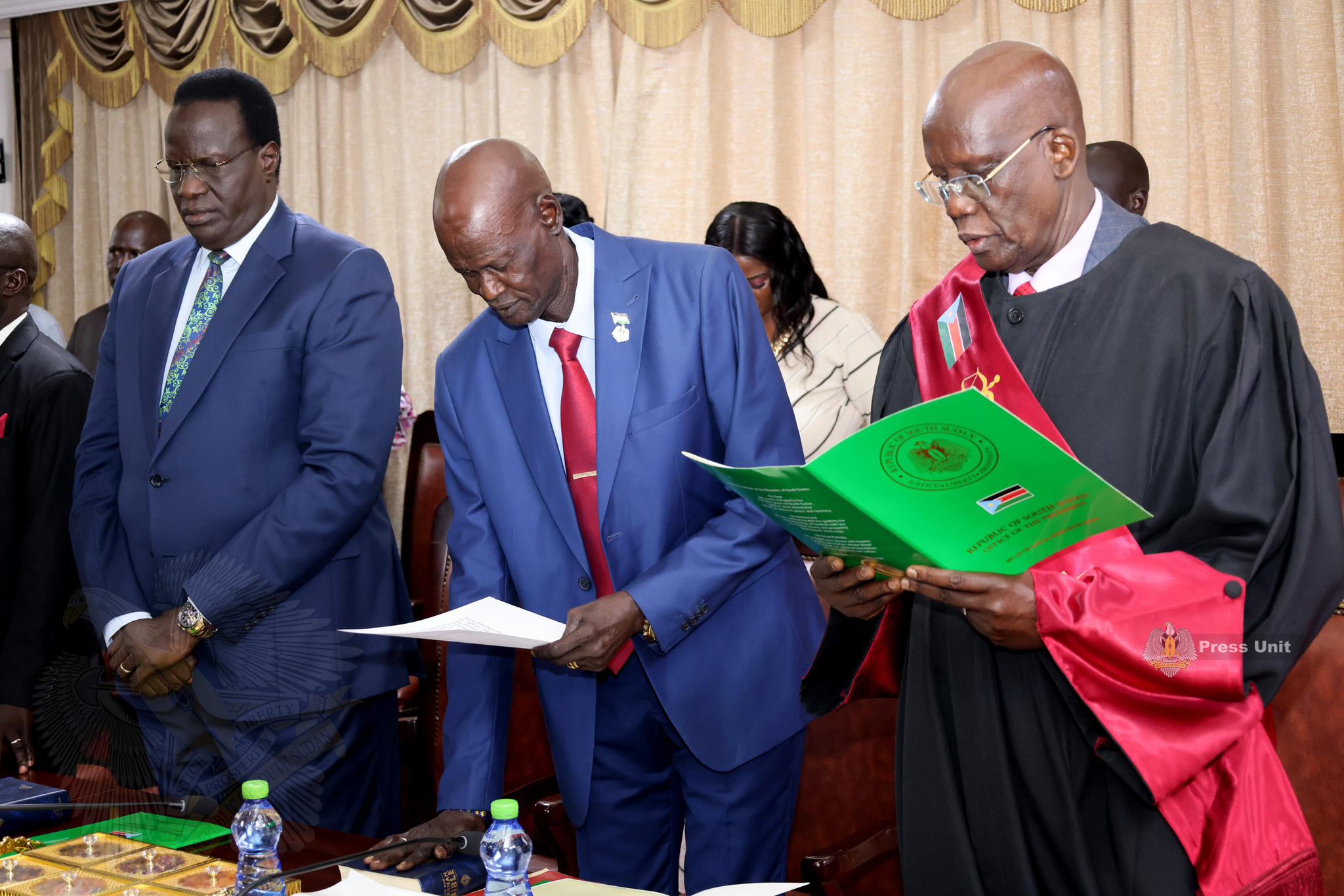 The President of the Republic of South Sudan, Salva Kiir Mayardit, has called on citizens to remain calm, strengthen national unity, and focus on achieving peace, as he presided over the swearing-in ceremony of newly appointed government officials at the State House in the capital, Juba.