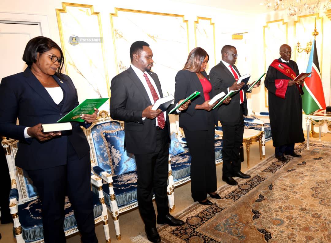 The list of ambassadors sworn in includes Albino Madut Majok, Victoria Nyandur Makamw, Lual Ngeth Agany, and Ayak Leon Garang.
