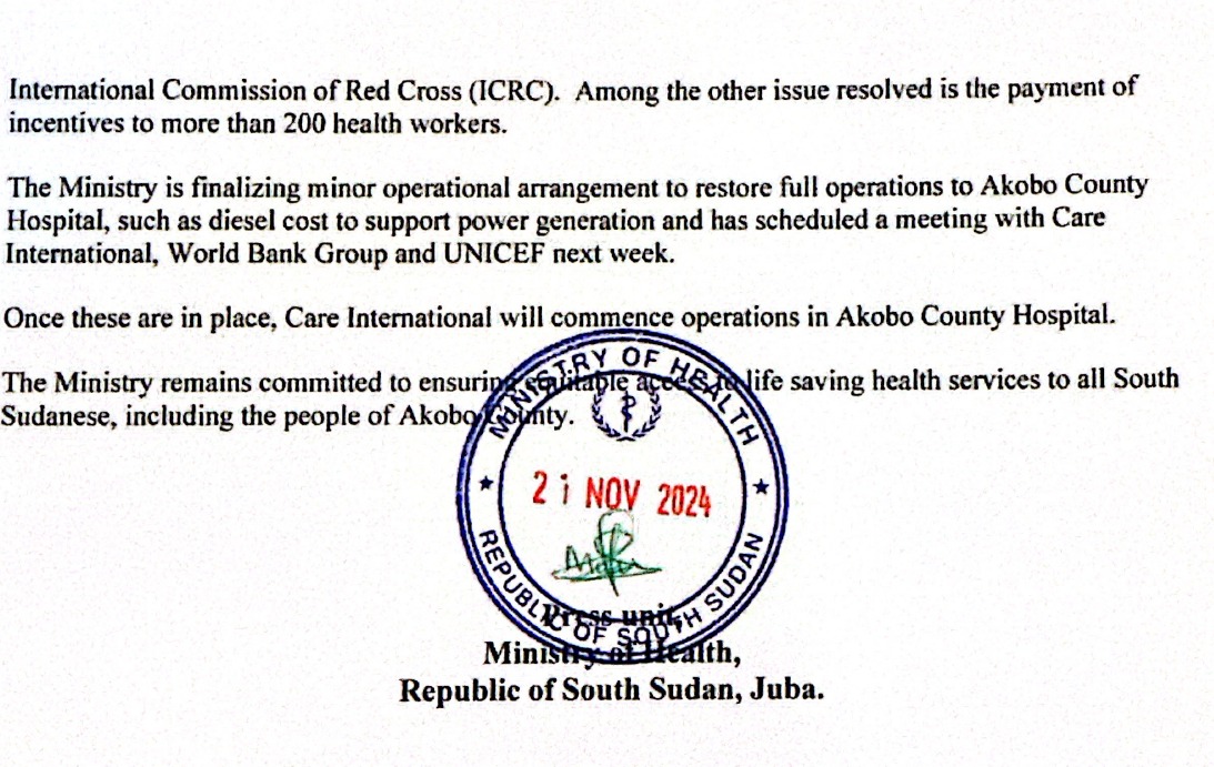 The project management organization, UNICEF, oversaw this process, with Save the Children emerging as the implementing partner for batch 7, under which Akobo County Hospital falls.